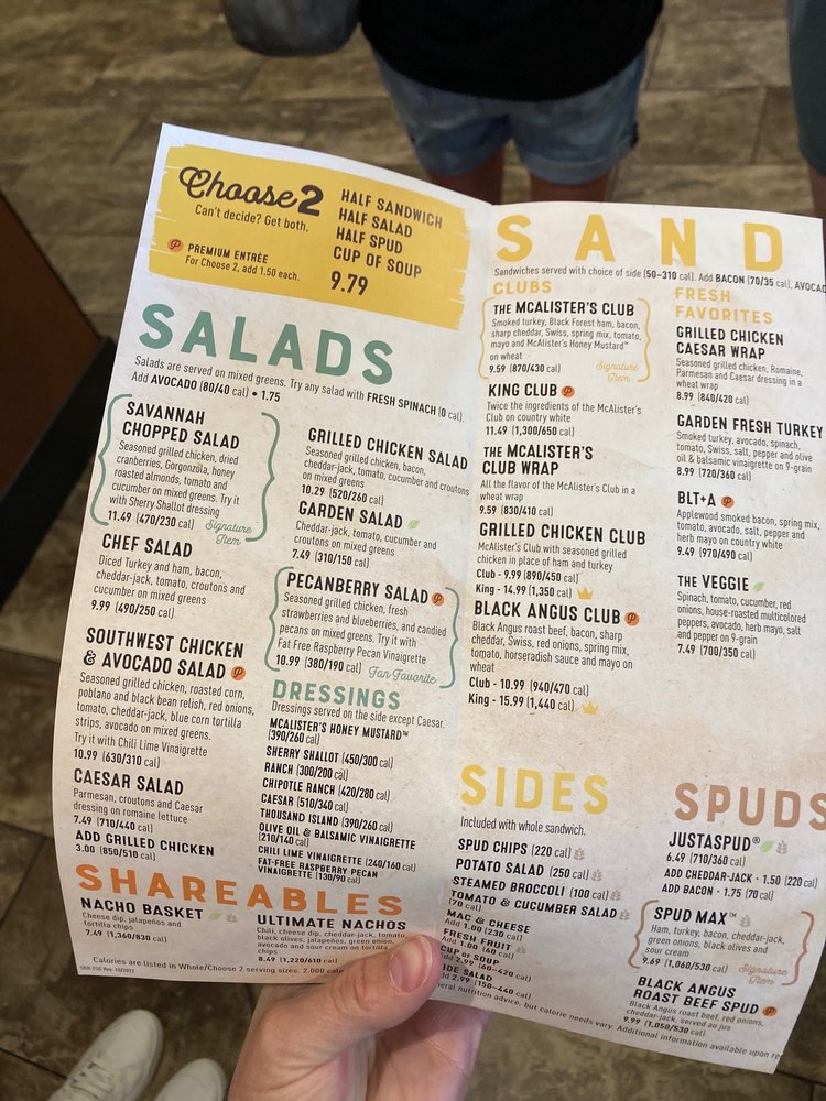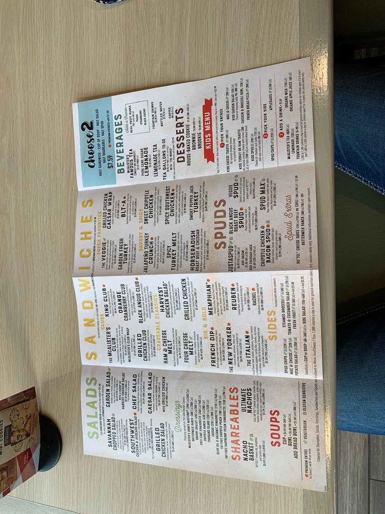 McAlister's® menu has so many great items, it's hard making a choice. That's why we allow you to "Choose 2." You can have a half salad and a cup of soup too, no sacrificing one or the other required. You can pair a sandwich with a spud, or any other combination your heart desires. The more you try, the more you'll love coming back.